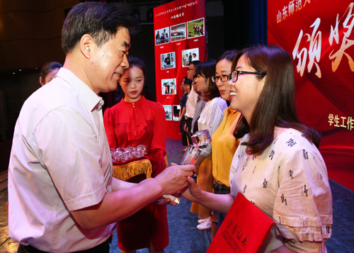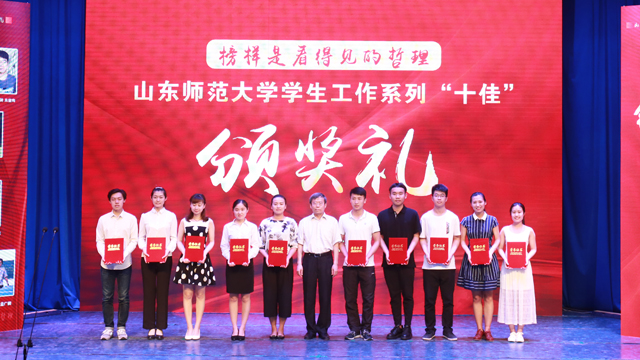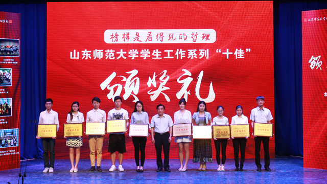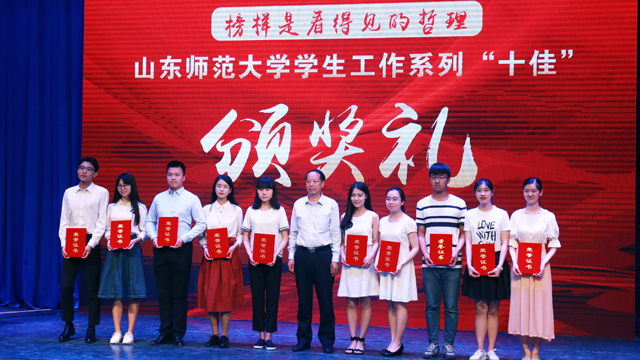 5月18日上午,“榜样是看得见的哲理”——学生工作系列“十佳”颁奖礼在我校千佛山校区音乐厅隆重举行。校党委书记商志晓,校党委副书记王焕斌,副校长王少华、满宝元出席活动并为获奖集体和个人颁奖。学校学生工作领导小组成员,各学院党委书记、副书记,全体辅导员,学生处全体工作人员以及部分学院学生代表参加活动。