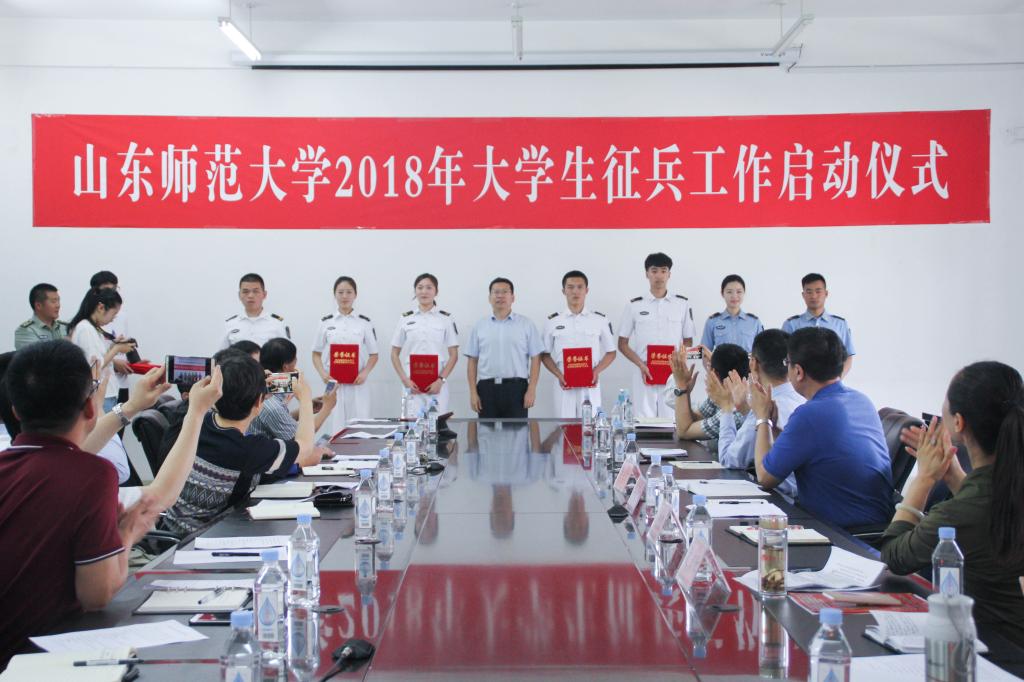 5月18日,学校于长清湖校区综合教学楼C区148会议室举行2018年大学生征兵工作启动仪式。济南历下区人民武装部负责同志,学校学生工作部、武装部负责同志及各学院(部)党委副书记、国防教育辅导员、2017年退役复学的大学生士兵及部分学生代表参加了会议。