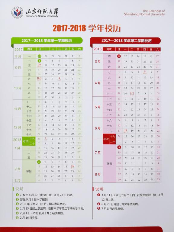山东师范大学2017-2018学年校历